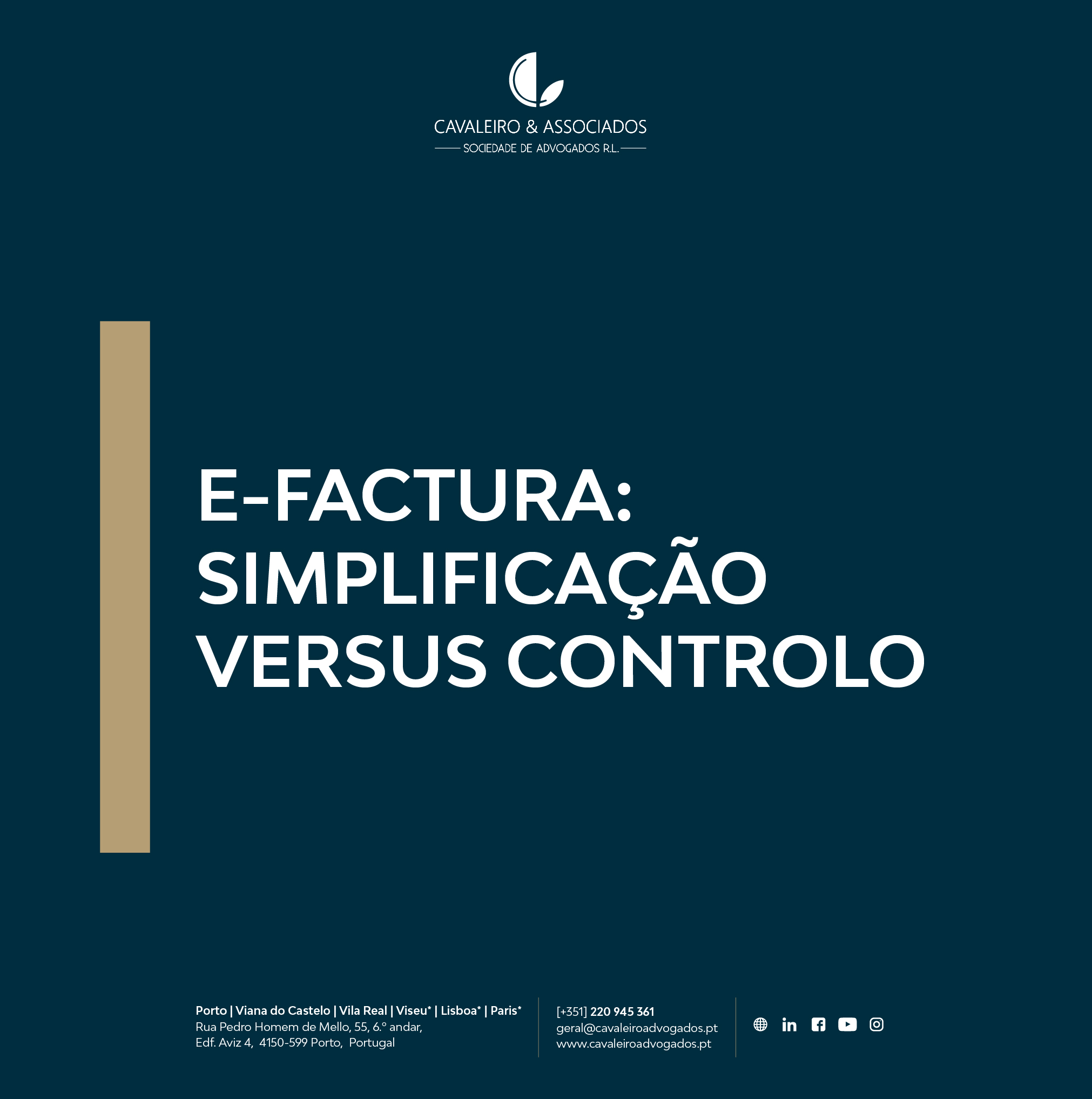 Artigos Abril 19, 2024Diretores de empresas: término da relação laboral: Proteção de Dados PessoaisLer mais Abril 19, 2024Diretores de empresas: término da relação laboral: A Propriedade Intelectual da EmpresaLer mais Abril 18, 2024Diretores de empresas: término da relação laboral: O Know-howLer mais Abril 18, 2024Diretores de empresas: término da relação laboral: Confidencialidade e SigiloLer mais Abril 18, 2024Diretores de empresas: término da relação laboral: Pacto de Não ConcorrênciaLer mais Abril 18, 2024Diretores de empresas: término da relação laboral: a ExclusividadeLer mais Abril 18, 2024Os 7 pontos mais relevantes no término da relação laboralLer mais Abril 17, 2024Cavaleiro & Associados está onde os clientes precisam!Ler mais Abril 11, 2024Cavaleiro & Associados representada no Torneio de Futsal do PortoLer mais Abril 8, 2024Guia das Empresas – O Guia para a sua empresaLer mais Abril 8, 2024Guia das Empresas – É gestor(a) ou empresário(a)?Ler mais Abril 8, 2024Por Caminhos Direitos – 10 líderes de excelênciaLer mais Abril 8, 2024Por Caminhos Direitos – O propósito de vidaLer mais Abril 8, 2024Por Caminhos Direitos – Inspirar pelo SucessoLer mais Abril 8, 2024Legal I&D – o projeto de investigação da Cavaleiro & AssociadosLer mais Abril 8, 2024Marcos de DistinçãoLer mais Abril 8, 2024O que motivou a candidatura à Legal I&D?Ler mais Abril 8, 2024Qual a importância do prémio da Cavaleiro & Associados?Ler mais Abril 8, 2024Parceria com a Faculdade de Direito da Universidade Católica do PortoLer mais Abril 8, 2024Prémio de Investigação Cavaleiro & AssociadosLer mais Abril 2, 2024Cavaleiro & Associados referenciada pela The Legal 500Ler mais Abril 2, 2024Compra e venda de empresa – Sonorgás à iConLer mais Abril 1, 2024Fundo de Compensação do TrabalhoLer mais Março 25, 2024Cavaleiro & Associados no In-Lex 2024Ler mais Março 22, 2024Cavaleiro & Associados no AIJA 2024Ler mais Março 20, 2024Reforço do escritório de Viseu e PortoLer mais Março 19, 2024Cavaleiro & Associados no ranking da Chambers and PartnersLer mais Março 14, 2024| Mercado de CarbonoLer mais Março 14, 2024Os 8 pontos mais importantes no destacamento de trabalhosLer mais Março 11, 2024| Tributação em IRS – Habitação própria permanenteLer mais Março 7, 2024Três pontos que deve saber sobre o ArrendamentoLer mais Março 7, 2024O que deve saber sobre Urbanismo & LicenciamentosLer mais Março 7, 2024Procedimento de despejo e de injunção no arrendamentoLer mais Março 5, 2024As oportunidades para o futuro energéticoLer mais Fevereiro 28, 2024Renovação da certificação EFRLer mais Fevereiro 21, 2024Revelamos os novos alunos do Programa Legal I&DLer mais Fevereiro 20, 2024Reforço do escritório de Vila RealLer mais Fevereiro 19, 2024Os 7 cuidados a ter no Regime de gestão de ativosLer mais Fevereiro 8, 2024Direito da EnergiaLer mais Janeiro 29, 2024Cavaleiro & Associados lança o Programa Legal I&DLer mais Janeiro 25, 2024João Quintela Cavaleiro orador no Ciclo de Conferências ESGLer mais Janeiro 24, 2024Mercado de CarbonoLer mais Janeiro 24, 2024Ciclo de Conferências ESGLer mais Janeiro 19, 2024UrbanismoLer mais Janeiro 18, 2024Cavaleiro & Associados no Seminário de Inverno AIJA 2024Ler mais Dezembro 13, 2023Diploma de Baixa TensãoLer mais Dezembro 7, 2023Quem é Quem?Ler mais Novembro 29, 2023Novidades LegaisLer mais Novembro 22, 2023Ranking Best LawyersLer mais Novembro 21, 2023Novidades LegaisLer mais Novembro 16, 2023Critérios Ambientais para os diferentes setores de atividade! ESGLer mais Novembro 7, 2023Novidades LegaisLer mais Novembro 6, 2023Novidades LegaisLer mais Setembro 12, 2023CAVALEIRO E ASSOCIADOS PARTICIPA NO CONGRESSO MUNDIAL DA AIJA 2023Ler mais Agosto 31, 2023PESQUISA LEGIXLer mais Maio 19, 2023Regime Fiscal dos Residentes Não HabituaisLer mais Março 27, 2023Hidrogénio Verde na União EuropeiaLer mais Março 7, 2023DIREITO DO CONSUMIDOR: Alterações contratuais nos contratos de telecomunicaçõesLer mais Janeiro 4, 2023A AUTORIDADE PARA AS CONDIÇÕES DE TRABALHOLer mais Julho 5, 2022PUBLICAÇÕES – LABORAL / SEGURANÇA SOCIALLer mais Julho 1, 2022PUBLICAÇÕES – PESQUISA FISCAL / FINANÇAS / ATLer mais Junho 20, 2022| SEGURANÇA SOCIALLer mais Junho 20, 2022PUBLICAÇÕES LEGIX – PESQUISA FISCALLer mais Junho 20, 2022PUBLICAÇÕES LEGIX – ENERGIALer mais Junho 17, 2022| INFARMEDLer mais Maio 31, 2022DIREITO DE PREFERÊNCIA DAS AUTARQUIASLer mais Maio 3, 2022SISTEMA ELÉCTRICO NACIONALLer mais Abril 29, 2022ALTERAÇÕES AO REGIME DA PROPRIEDADE HORIZONTALLer mais Abril 28, 2022O QUE MUDA NO LICENCIAMENTO DAS ENERGIAS RENOVÁVEIS E DO HIDROGÉNIOLer mais Abril 8, 2022SGPS EQUIPARADAS A INSTITUIÇÕES FINANCEIRAS PARA EFEITOS DE ISENÇÃO DE IMPOSTO DE SELOLer mais Fevereiro 22, 2022A NOVA REGULAMENTAÇÃO DO TELETRABALHOLer mais Fevereiro 7, 2022| DECRETO-LEI N.º 84/2021, DE 18 DE OUTUBROLer mais Fevereiro 3, 2022| DECRETO-LEI N.º 84/2021, DE 18 DE OUTUBROLer mais Fevereiro 1, 2022| DECRETO-LEI N.º 84/2021, DE 18 DE OUTUBROLer mais Janeiro 27, 2022Compra e venda de bens de consumo – Decreto Lei N.o 84/2021, de 18 de outubroLer mais Janeiro 11, 2022LEGISLAÇÃO COVID MAIS RELEVANTELer mais Dezembro 20, 2021E-FACTURA: SIMPLIFICAÇÃO VERSUS CONTROLOLer mais Dezembro 14, 2021Digitalização, sustentabilidade e talento: três desafios da advocacia para 2022Ler mais Novembro 19, 2021Quem é Quem Na Advocacia de Negócios em Portugal 2020/2021 – Jornal EconómicoLer mais Novembro 17, 2021| NOTA 13 – ADITAMENTOS AO CCPLer mais Novembro 17, 2021| NOTA 12 – REVOGAÇÕES AO CCPLer mais Novembro 16, 2021| NOTA 11 – PARTE VLer mais Novembro 16, 2021| NOTA 10 – PARTE IVLer mais Novembro 16, 2021DECRETO-LEI N°92/2021, DE 8 DE NOVEMBROLer mais Novembro 16, 2021| NOTA 9 – PARTE IIILer mais Novembro 16, 2021PRESUNÇÃO DE MAIS VALIAS CONSIDERADA INCONSTITUCIONALLer mais Novembro 15, 2021TRIBUTAÇÃO DO SALD